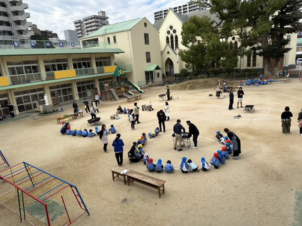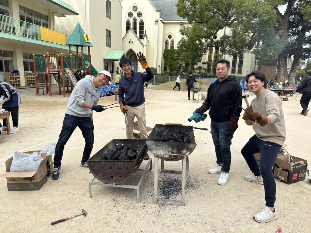 お手伝いのお父さま方が、汗をかきながら火を熾してくださいました。🔥